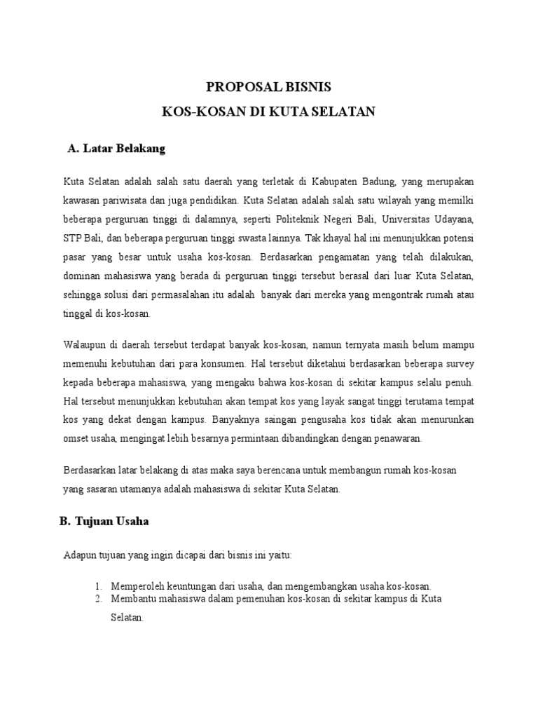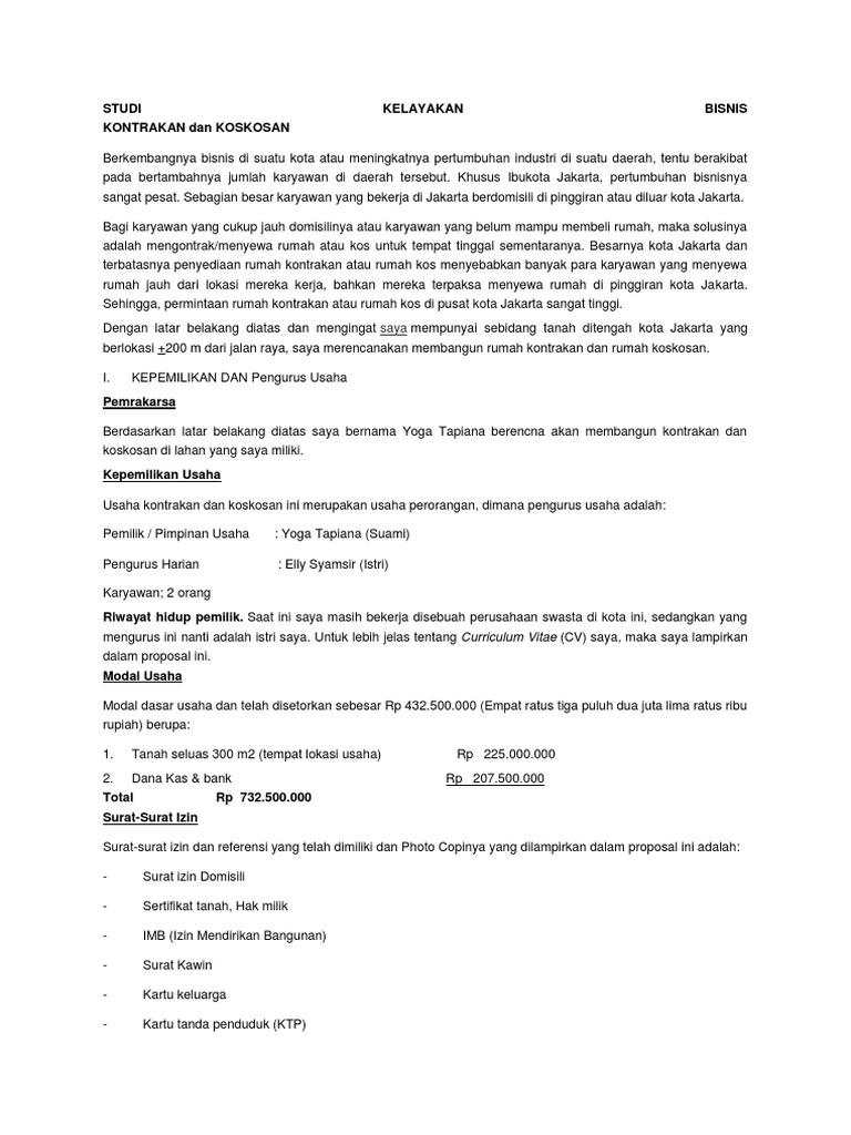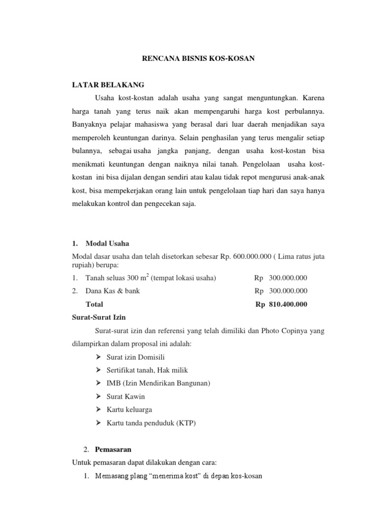 Mulaibisnis: Download Contoh Proposal Usaha Kontrakan Kost Kost an