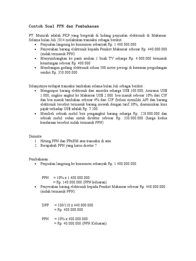 Contoh Soal Dan Jawaban Ppn Dan Ppnbm - Peranti Guru