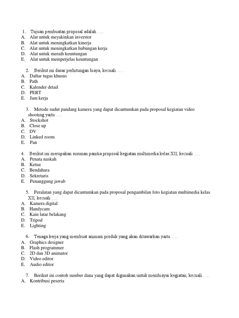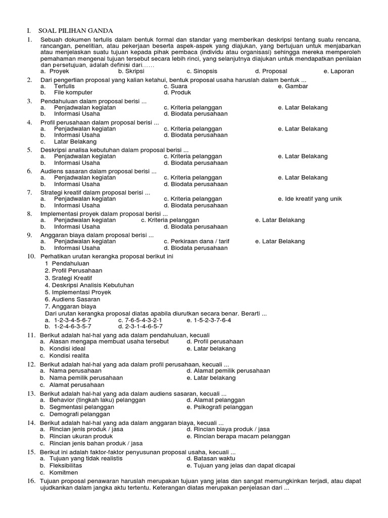 Contoh Soal Pilihan Ganda Tentang Proposal Beserta Jawabannya …