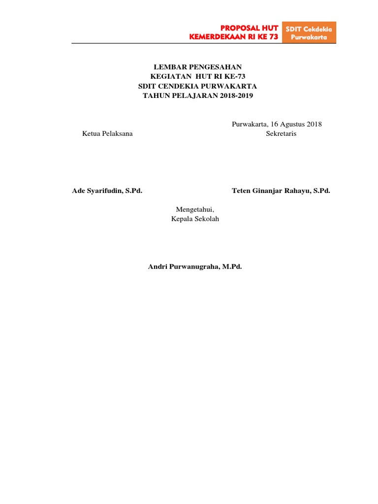 CONTOH] Lembar Pengesahan Proposal Kegiatan lengkap - SeputarPembahasan.Com