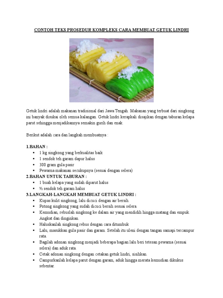 DOC) TEKS PROSEDUR KOMPLEKS CARA MEMBUAT GETUK LINDRI | hh iii - Academia.edu