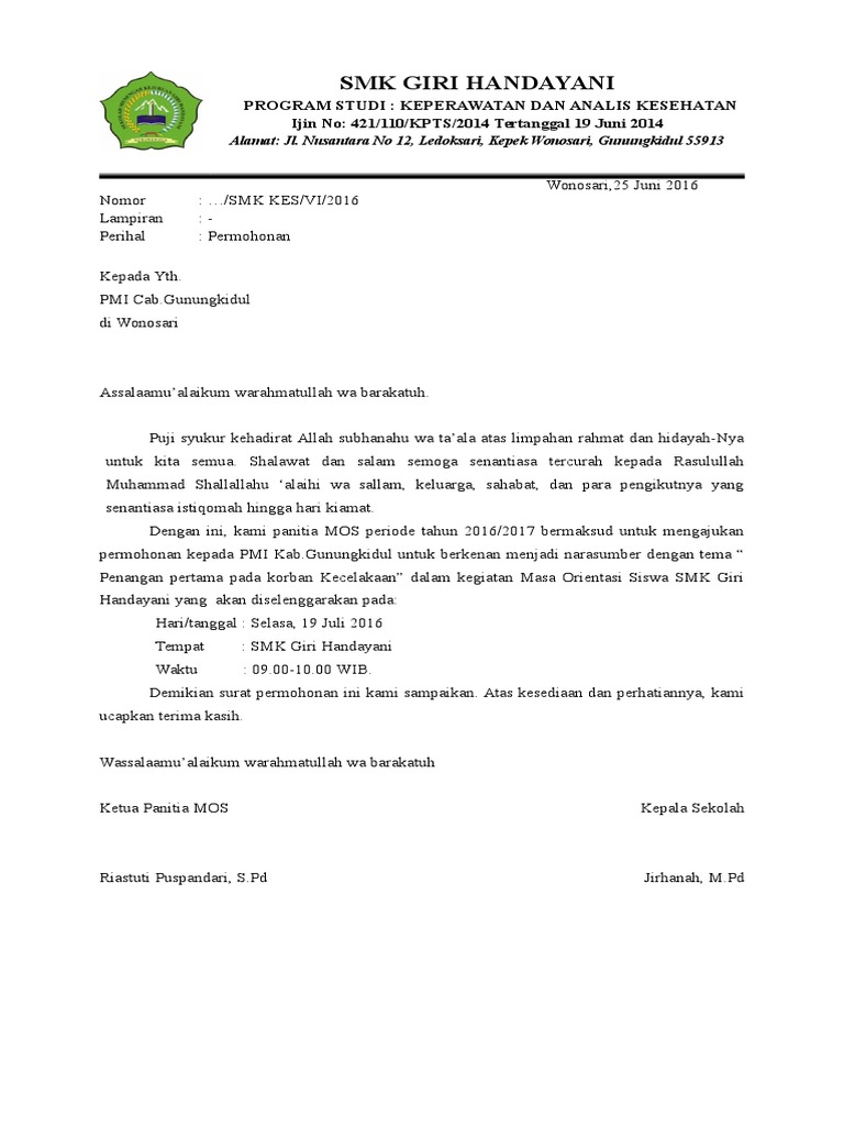 Contoh surat permohonan menjadi materi (Narasumber) | Pelajaran Sekolah | Bank Soal