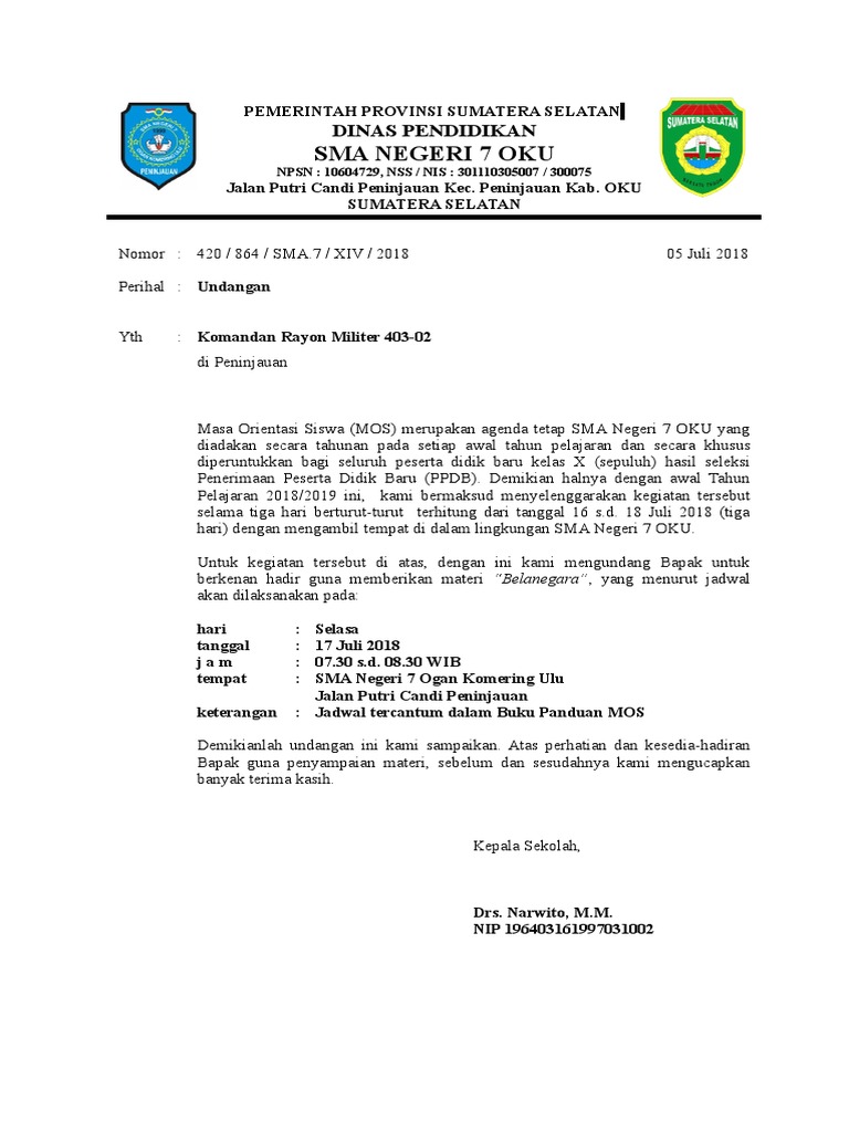 Contoh Surat Undangan/ Permohonan Pemateri Mos/ Pls 2018 - Dunia ilmu