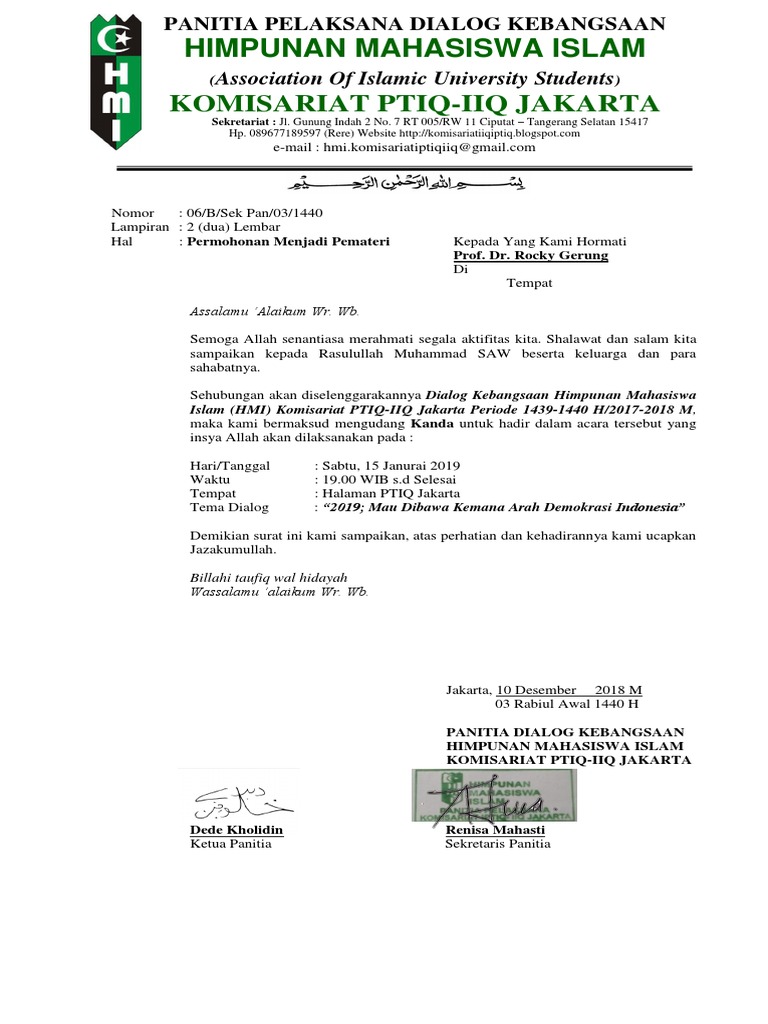 DOC) Surat Undangan Pemateri | Ihram Fajar - Academia.edu