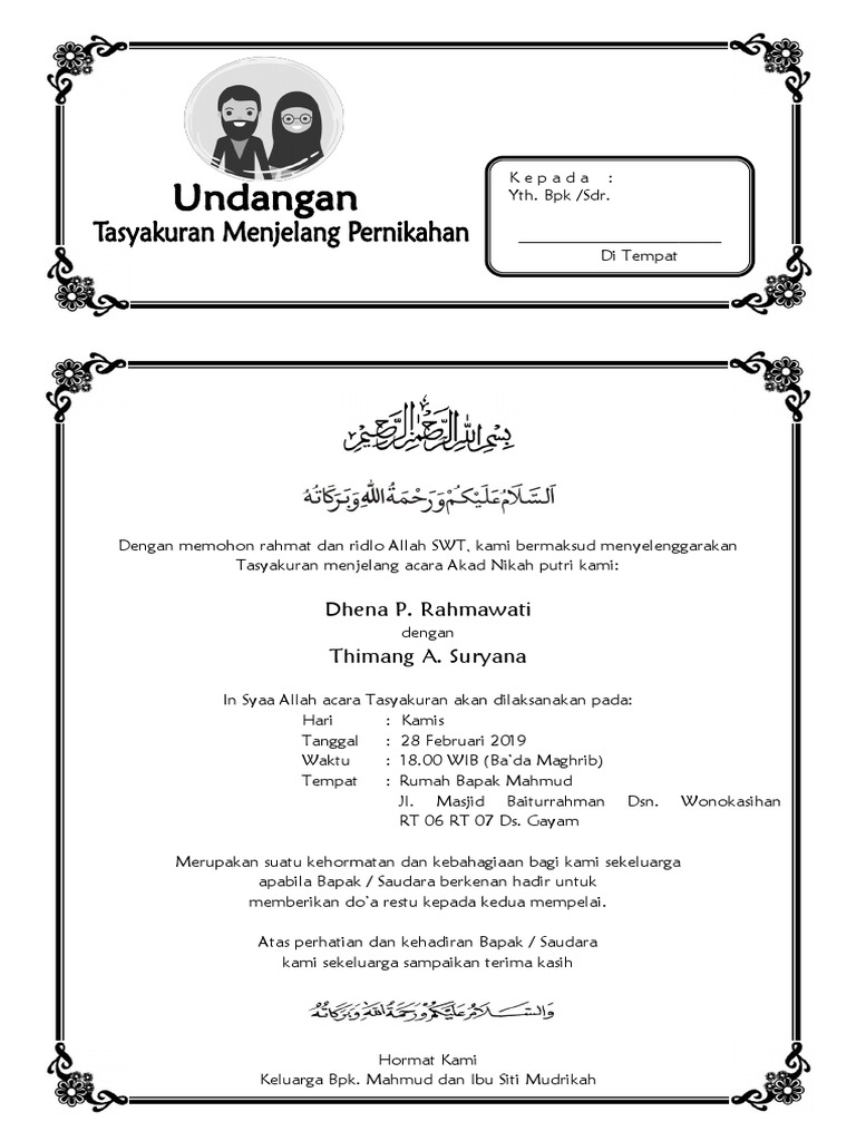DOC) Contoh Surat Undangan Syukuran Pernikahan | Liwaassin Lampbara - Academia.edu
