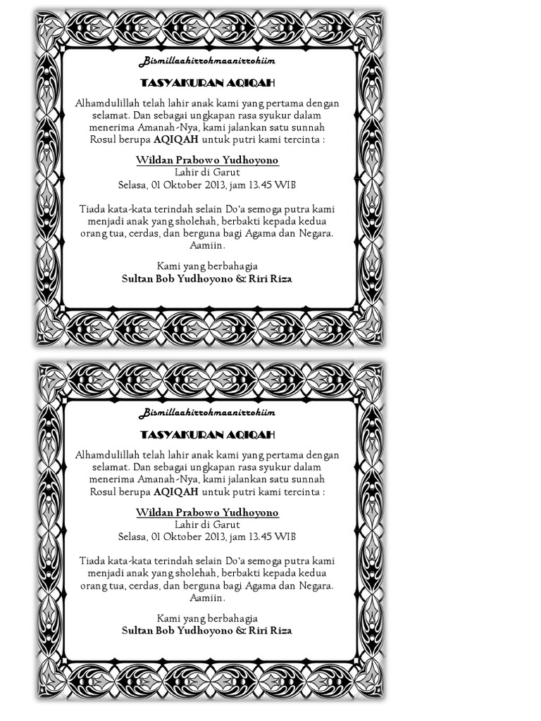 Kumpulan Contoh Undangan Aqiqah Doc Unik Terbaru - Desain Interior Exterior