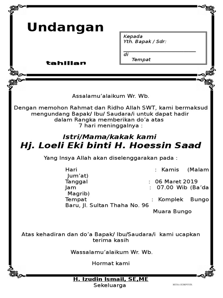 DOC) Contoh Undangan Tahlilan 40 Hari Meninggalnya | Haekal Iqbal - Academia.edu
