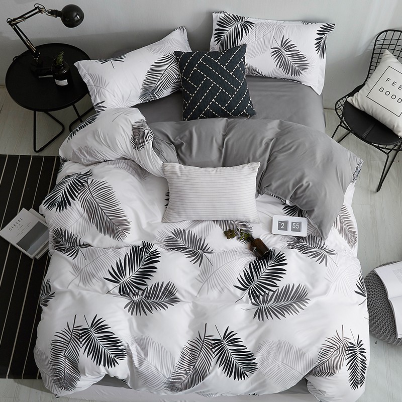 Set Sprei, Sarung Bantal dan Selimut dengan Bahan Polyester Gambar Motif Daun Warna Abu-abu | Shopee Indonesia