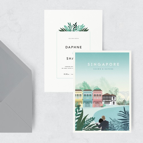 Singapore “vintage travel poster” wedding invitation design | Card or invitation contest | 99designs