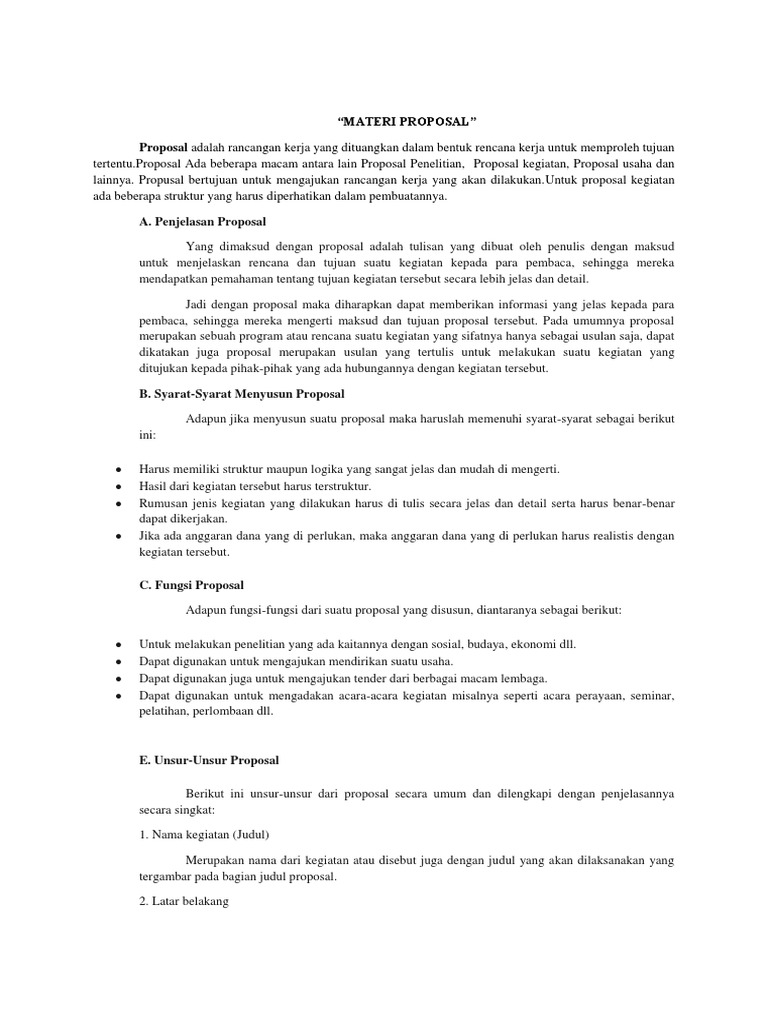 PDF) Proposal - Pengertian, Fungsi, Tujuan, Unsur dan Ciri-Cirinya | Dimas Zhafira F - Academia.edu