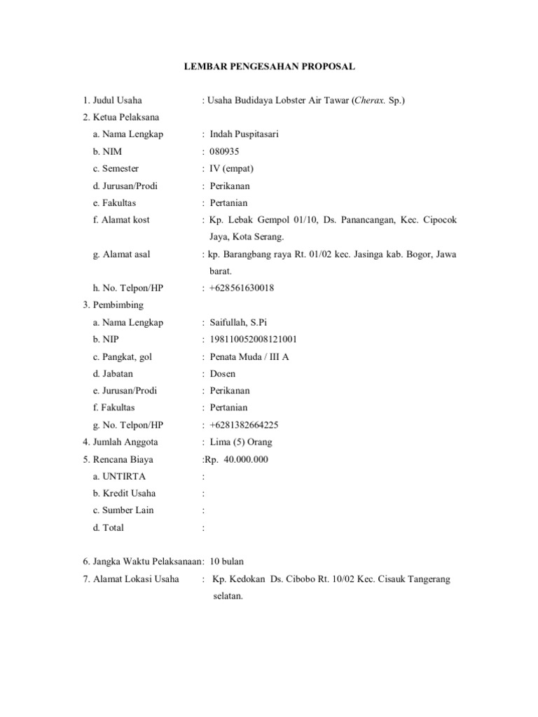 LEMBAR PENGESAHAN PROPOSAL PENGAJUAN DANA - PDF Download Gratis