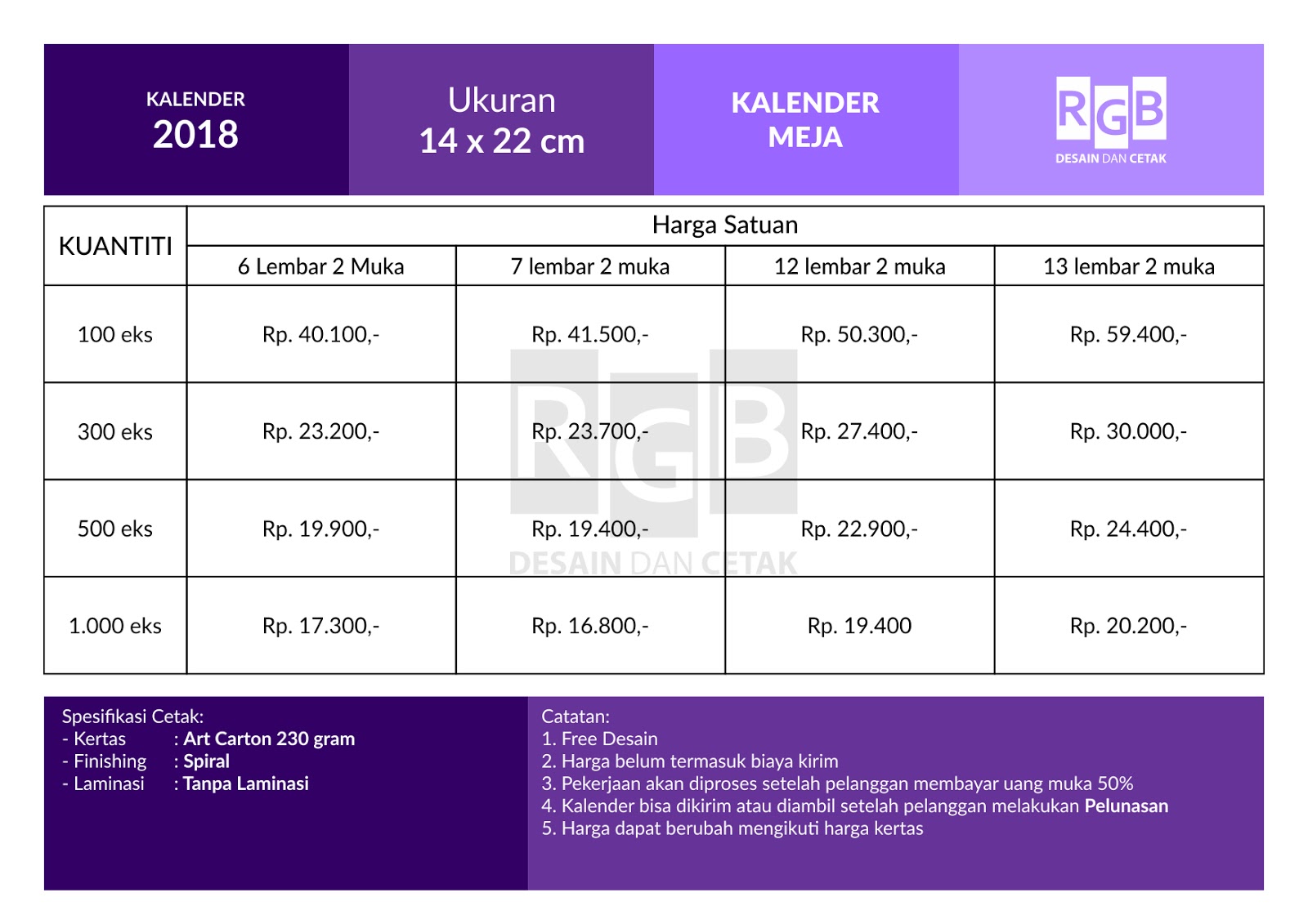 Daftar Harga Cetak Kalender 2019 - Diandra Kreatif Offset & Printing | Percetakan Jogja