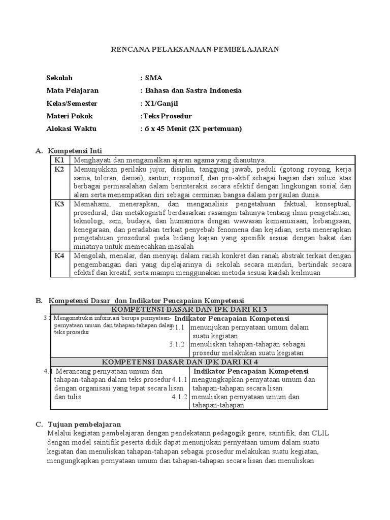 RPP B. Indo Kelas 11 Rev 2018 3.1 Dan 4.1 Teks Prosedur