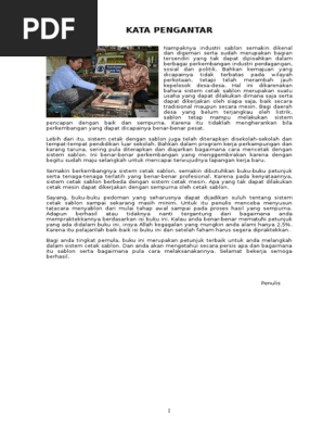 KATA PENGANTAR. berbeda dengan sistem cetak mesin. Apa yang tak dapat dilakukan cetak mesin dapat dikerjakan dengan sempurna oleh cetak sablon. - PDF Download Gratis