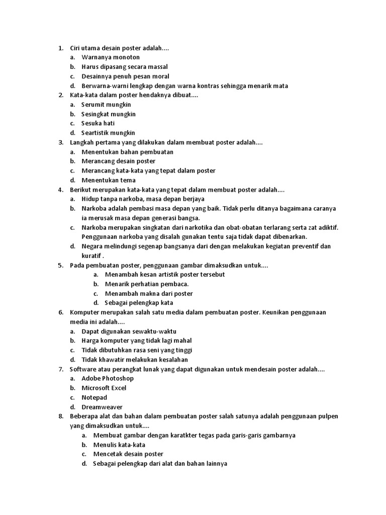 1.Poster hendaknya dibuat dalam bentuk karya seni…..2.Apa …