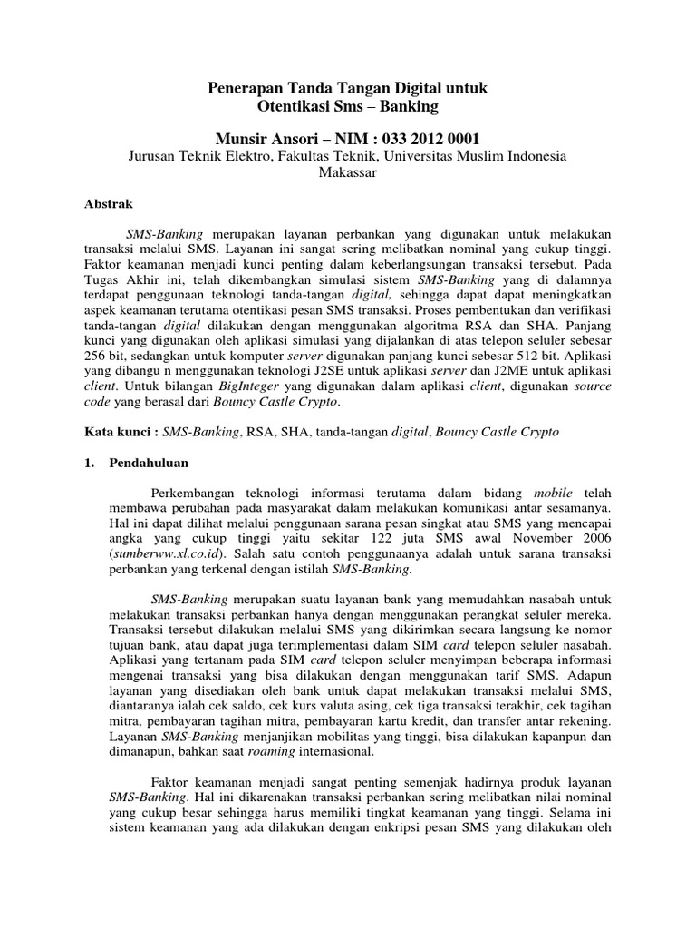 PDF) PENERAPAN TANDA TANGAN DIGITAL UNTUK OTENTIKASI SMS -BANKING | jack cb - Academia.edu