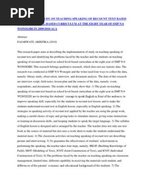 A Descriptive Study on Teaching Speaking of Recount Text Based on School Level | Qualitative Research | Quantitative Research