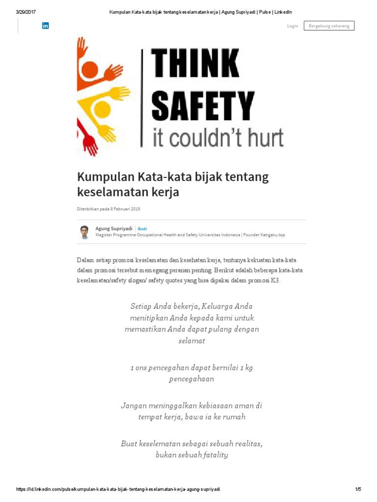 Kumpulan Kata-kata Bijak Tentang Keselamatan Kerja _ Agung Supriyadi _ Pulse _ LinkedIn