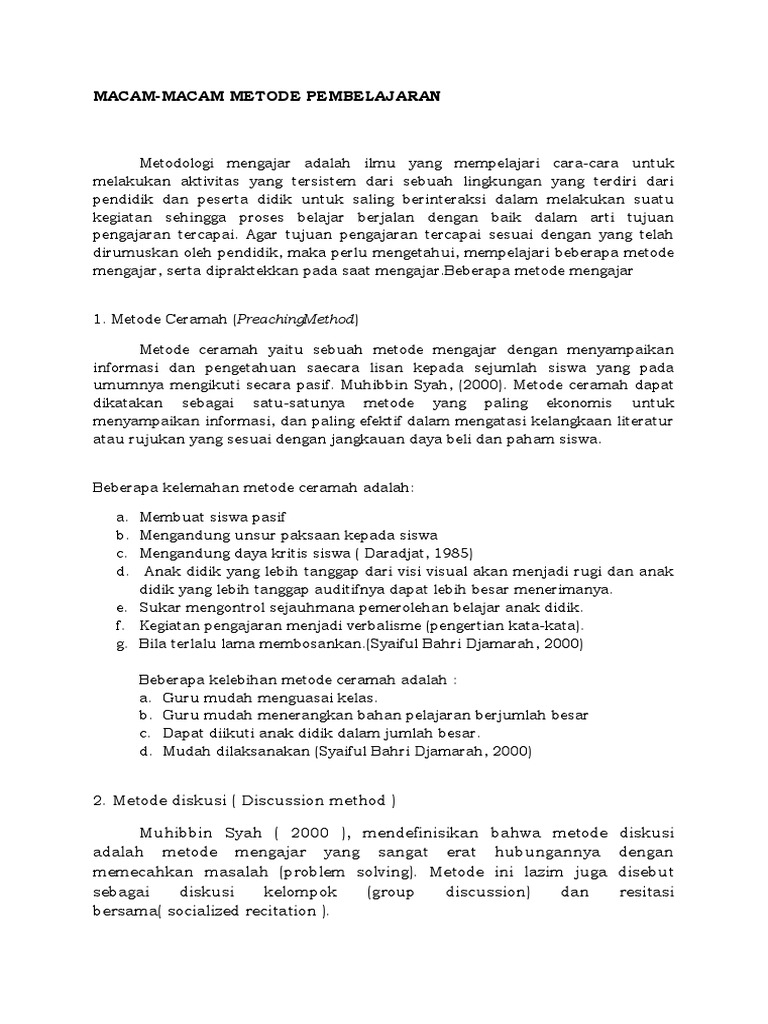 DOC) macam metode pembelajaranpembelajaran | Sutra Intang …