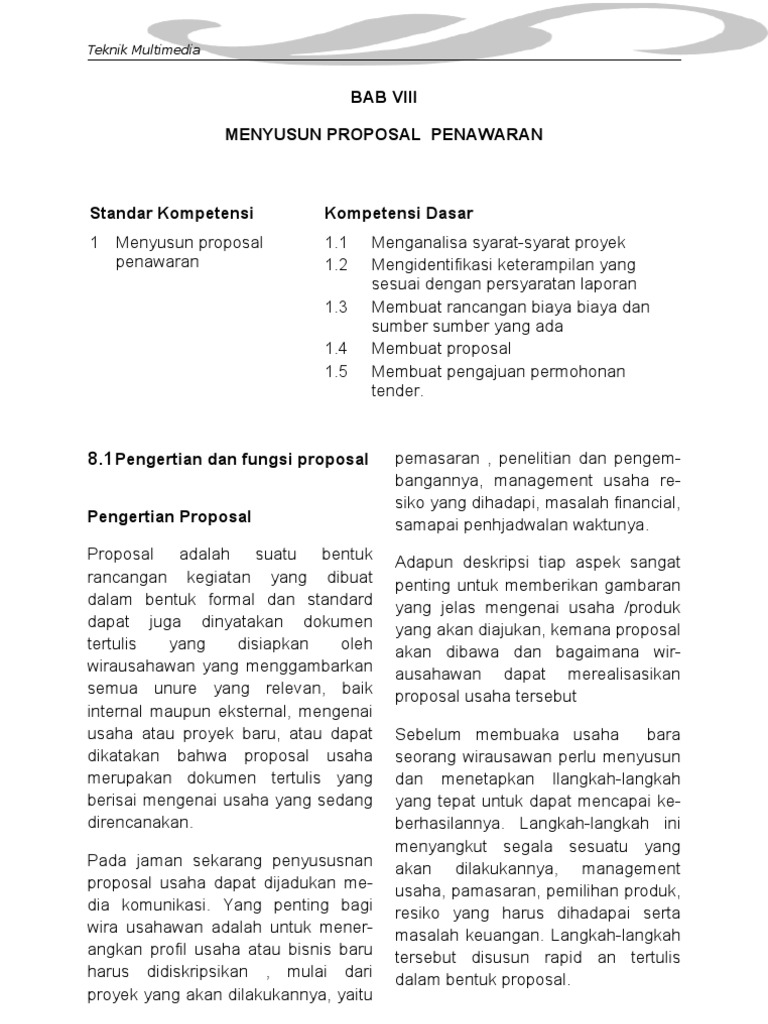 Bab Viii Menyusun Proposal Penawaran: Teknik Multimedia