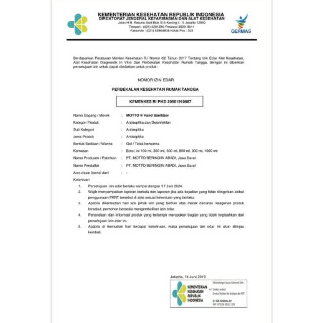 Jual HAND SANITIZER MOTTO 5 LITER khusus Grab Gojek - Kota Depok …