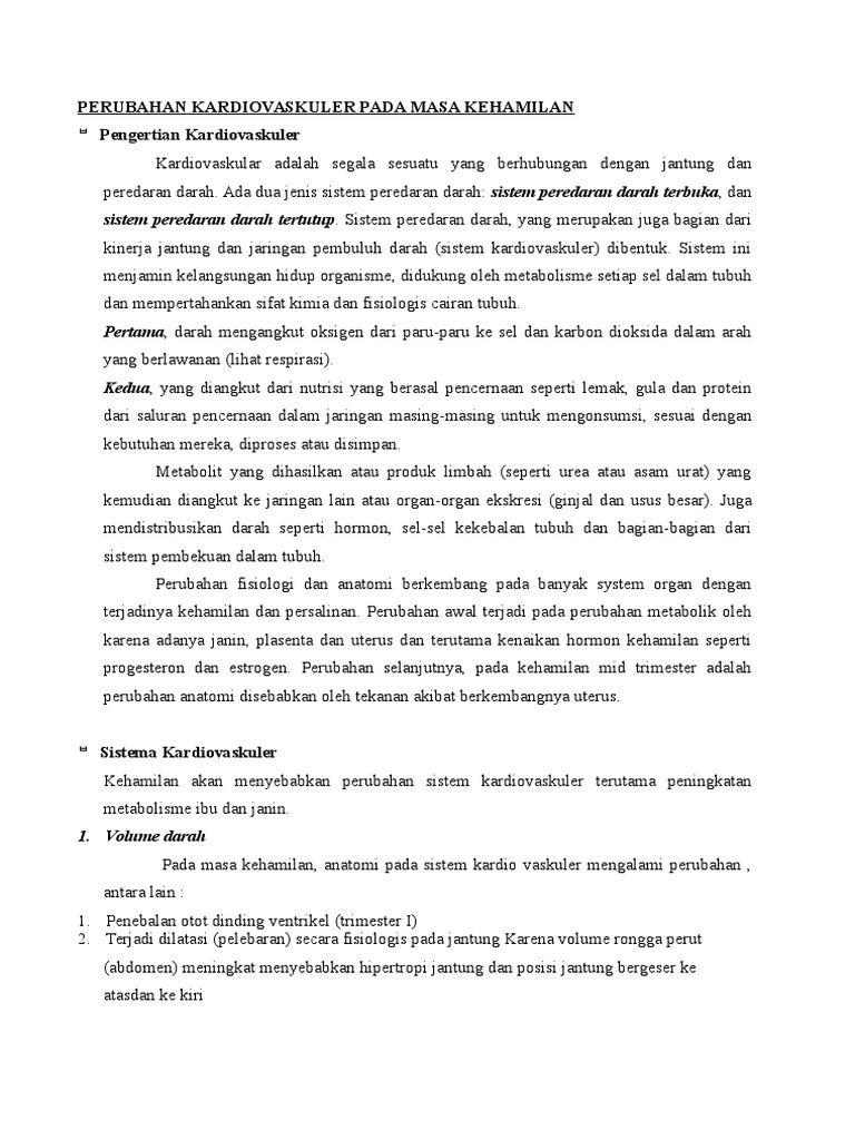 DOC) Makalah perubahan kardiovaskuler | yulianti sutarsa - Academia.edu