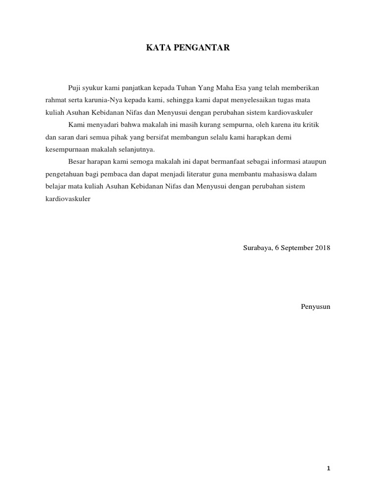 MAKALAH PERUBAHAN SISTEM KARDIOVASKULER IBU NIFAS.docx - MAKALAH PERUBAHAN SISTEM KARDIOVASKULER PADA MASA NIFAS DAFTAR ISI KATA PENGANTAR.i DAFTAR | Course Hero