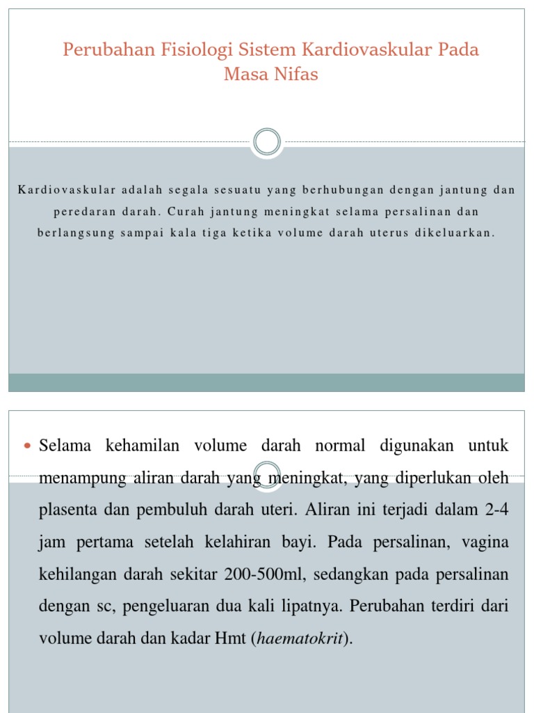 Perubahan Fisiologis Sistem Kardiovaskuler Pada Masa Nifas by Endah Sutarya