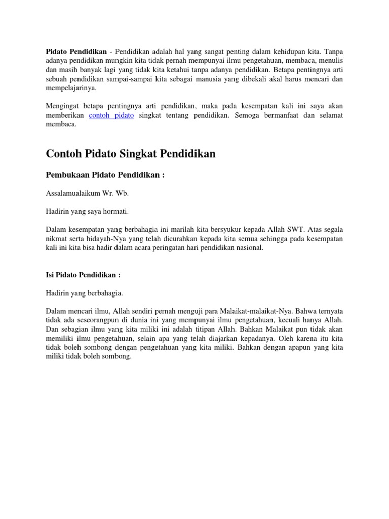 DOC) Contoh Pidato Singkat Pendidikan | indah mokobombang …