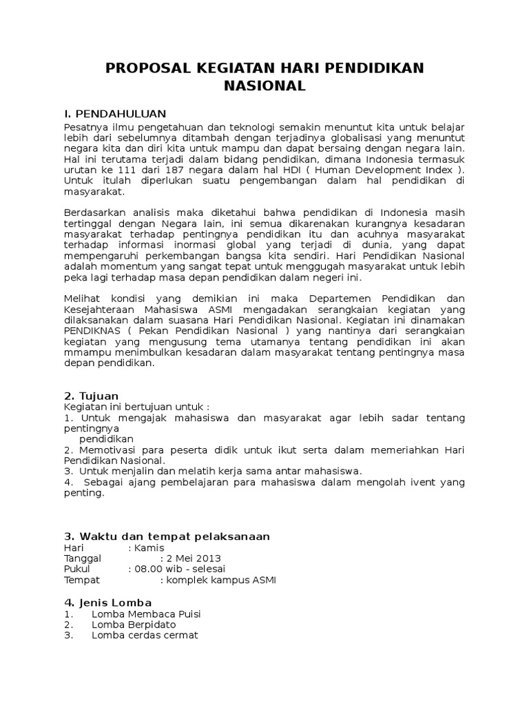 Contoh Proposal Kegiatan Hari Pendidikan Nasional - Berbagi Contoh …