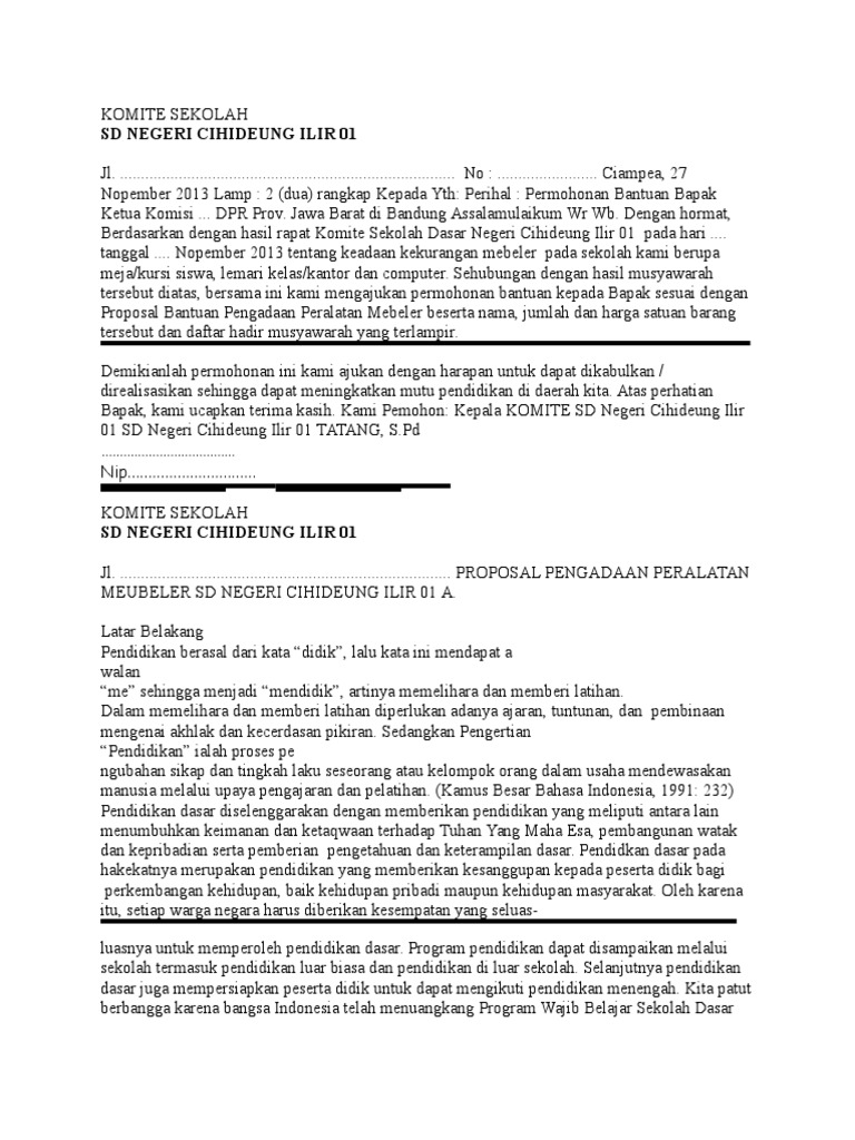 Contoh Proposal Bantuan Mebeler Sekolah - Hopwee