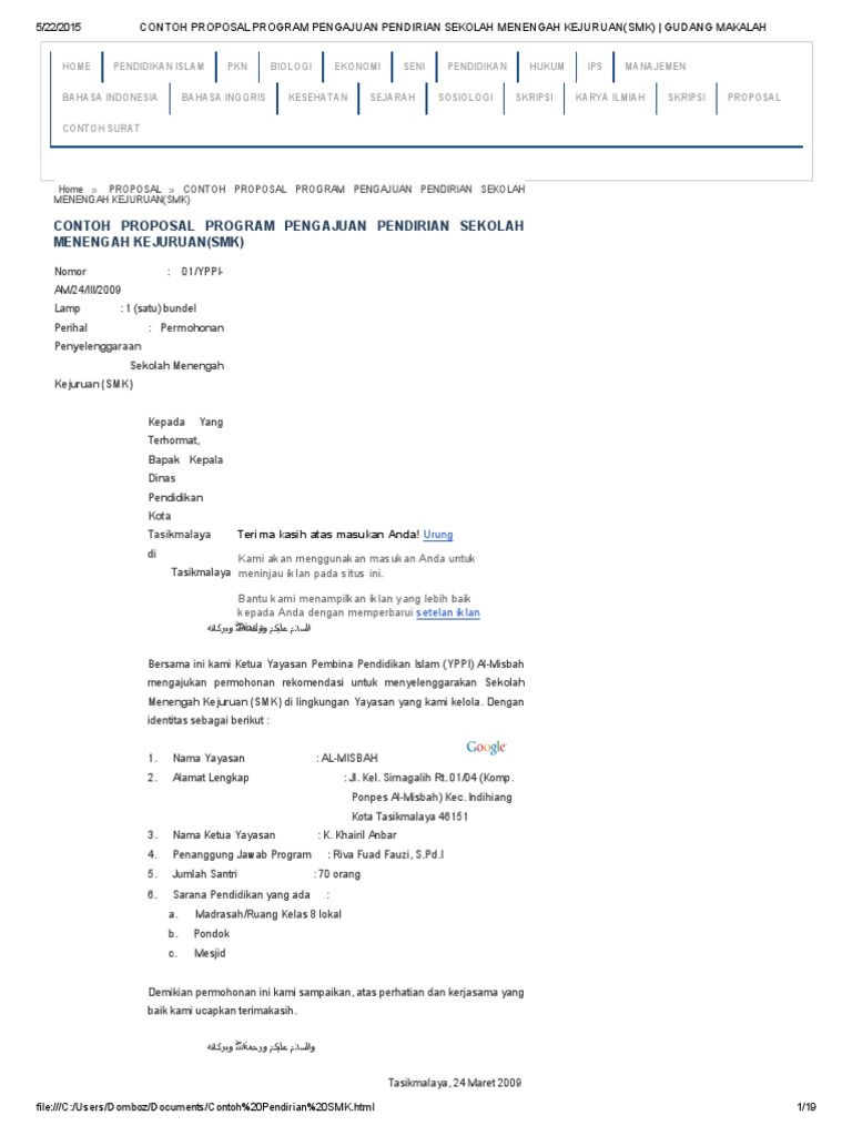 Contoh Proposal Pendirian Sekolah Smk Baru Pdf - Rismax