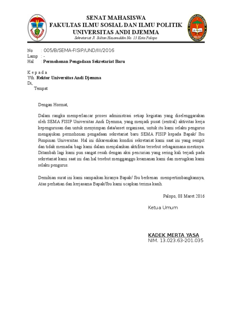 Surat Permohonan Pengadaan Sekretariat - PDF Free Download