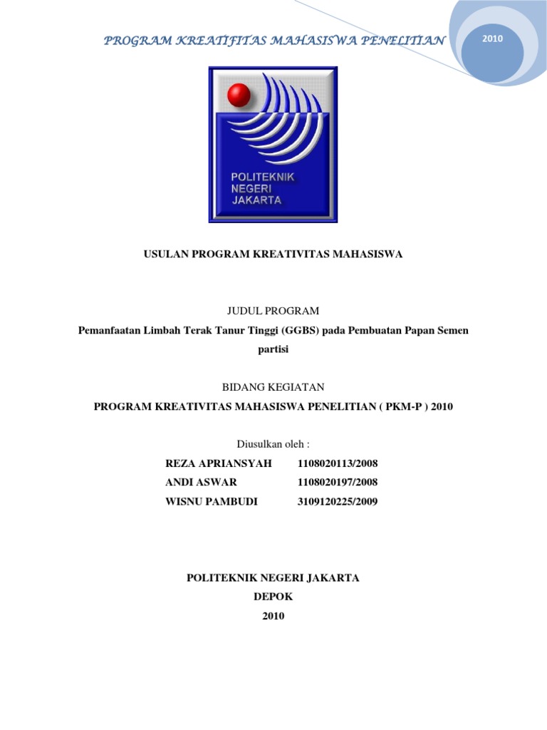 PDF) CONTOH PROPOSAL PROGRAM KREATIVITAS MAHASISWA JUDUL PROGRAM