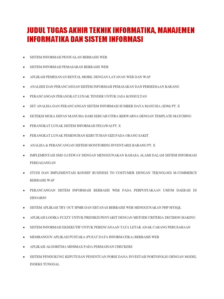 Skripsi dan Tugas Akhir Informatika Komputer: Contoh Judul Tugas Akhir Jurusan Manajemen Informatika