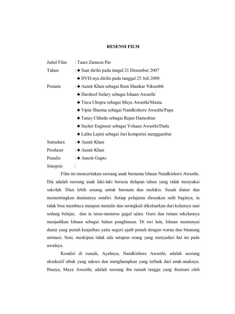 DOC) SINOPSIS FILM TAARE ZAMEEN PAR | Celis Kipyuarista Fitria - Academia.edu