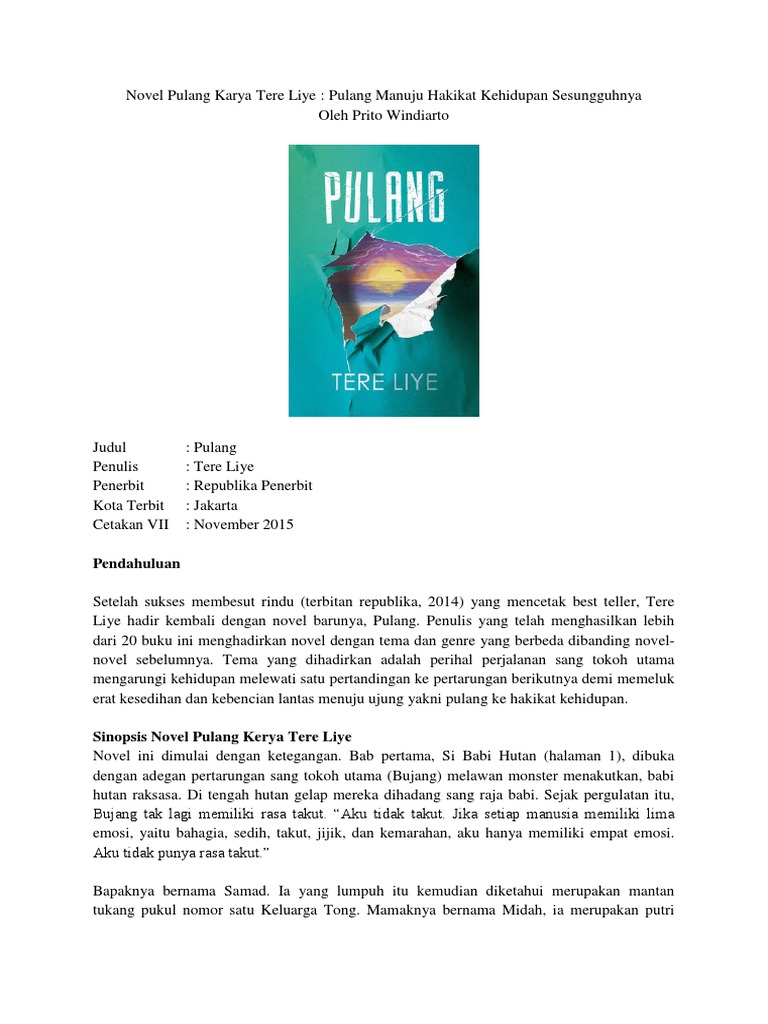 Resensi] Novel Pulang Karya Tere Liye Halaman 1 - Kompasiana.com
