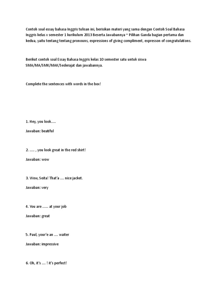 Soal Jawaban Essay Bahasa Inggris kelas X semester 2 | Bahasa | Sridianti.com