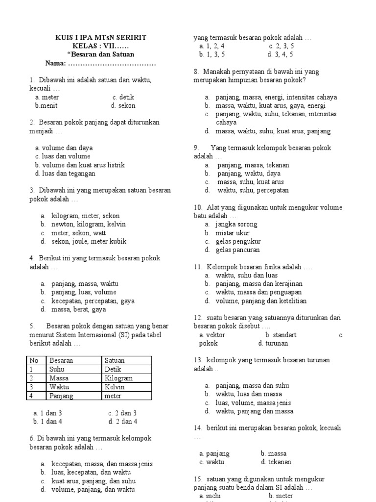 DOC) oal soal Pengukuran Besaran dan Satuan Plus Kunci Jawaban | Chul Reffaydrs - Academia.edu