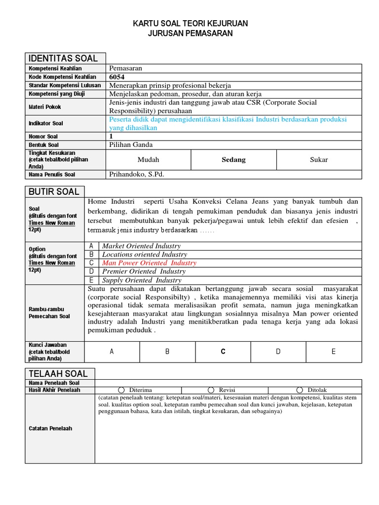 Soal Industri Perhotelan Dan Jawaban - Guru Ilmu Sosial