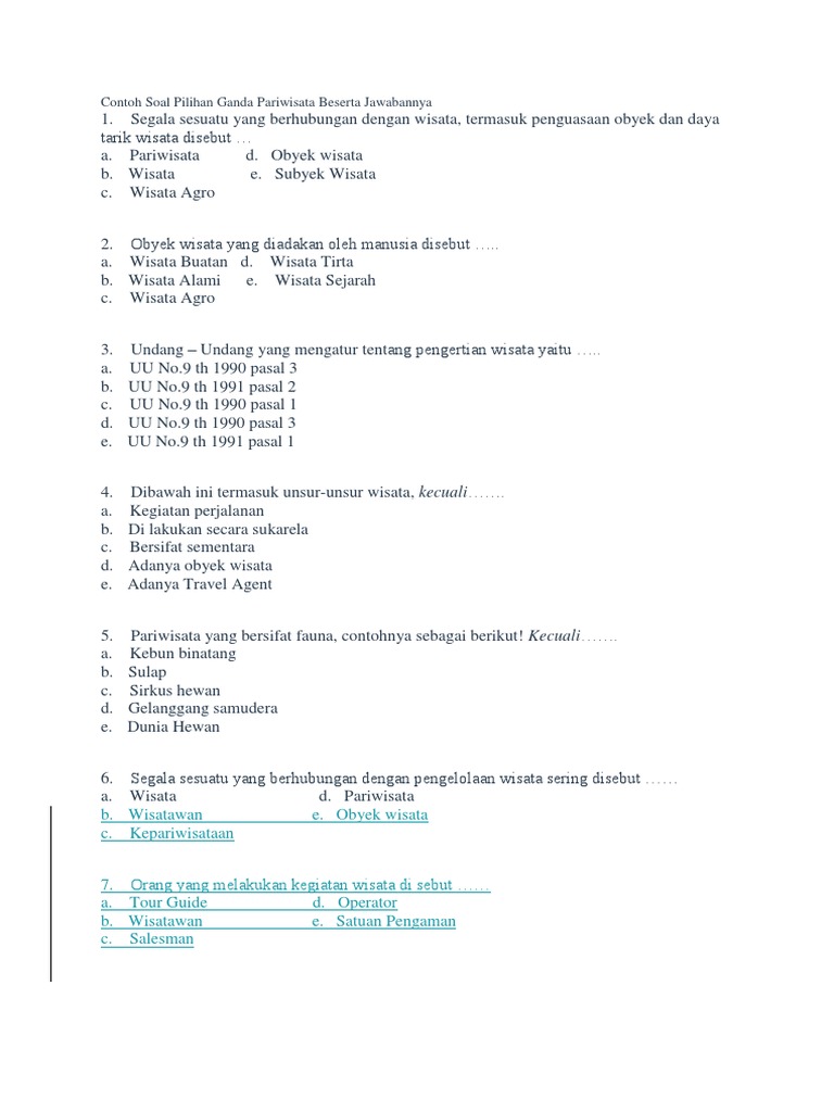 Contoh Soal Pilihan Ganda Pariwisata Beserta Jawabannya - Contoh …
