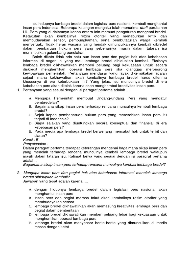 Soal Bahasa Indonesia Kelas 8 Semester 1 2 dan Jawabannya