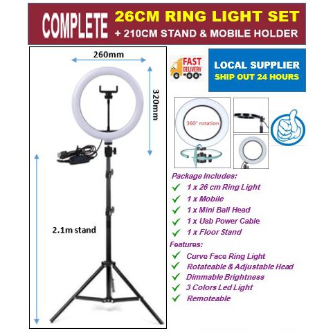 LOCAL SELLER POST 24 HOURS] 26CM RING LIGHT WITH 2.1M STAND FOR …