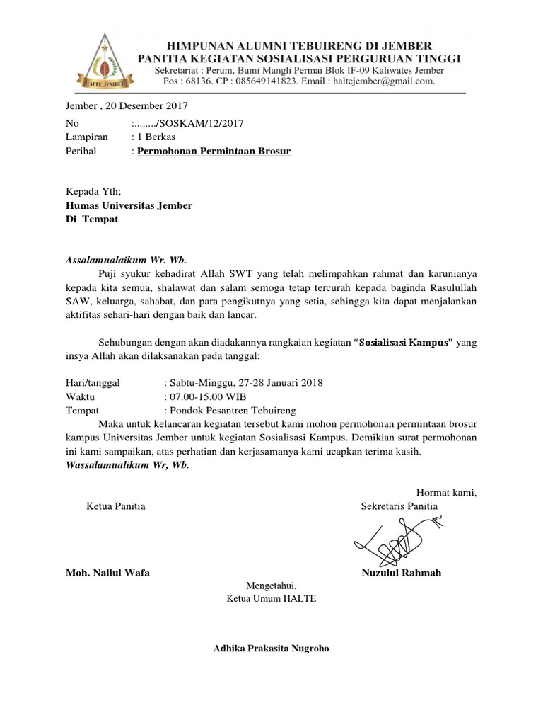 DOC) CONTOH SURAT PERMOHONAN IZIN dan BROSUR | daffa chuby - Academia.edu