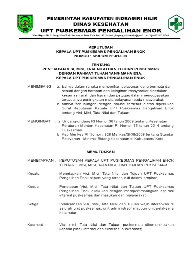 Contoh Sk Visi Misi Klinik Pratama - Guru Ilmu Sosial