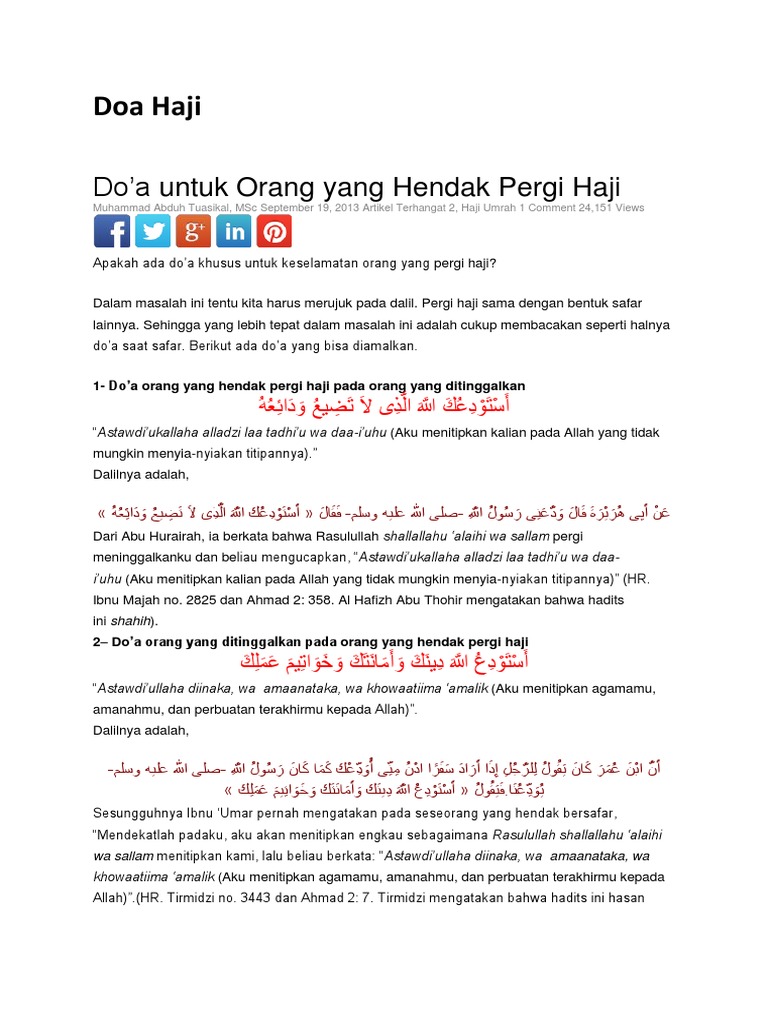 Kalimat Doa Di Ketika Pergi Haji Dan Orang Yang Ditinggal Pergi Haji