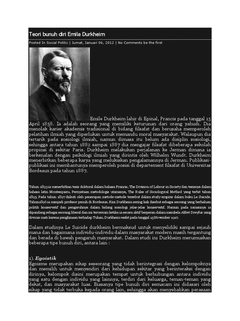 Teori Bunuh Diri Emile Durkheim