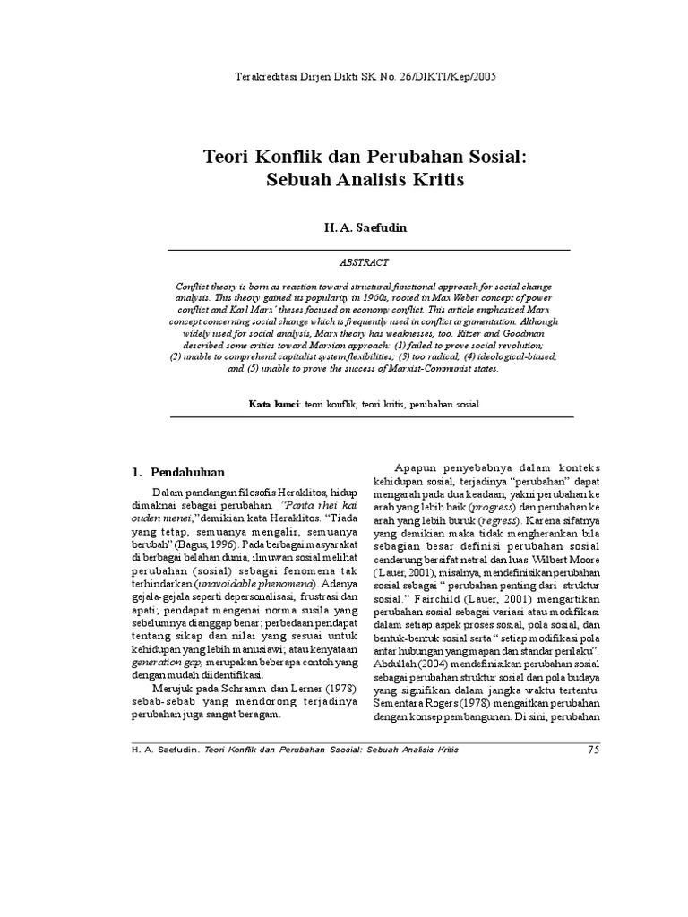 PDF) Dinamika Perubahan Sosial dalam Teori Konflik | Sumartono …